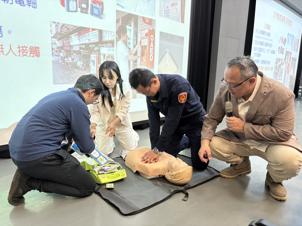 校長黃明昭對校園緊急救護高度重視,為全面強化校園安全應變量能,確保同仁熟悉自動體外心臟電擊去顫器操作流程,本校於115年3月24日辦理全校教職員工基本救命術教育訓練,本次邀請臺北市政府消防局王珏瑋小隊長蒞校指導。透過理論與實作演練,使同仁熟悉急救流程與操作要點,並強化「4分鐘內」即時應變能力。